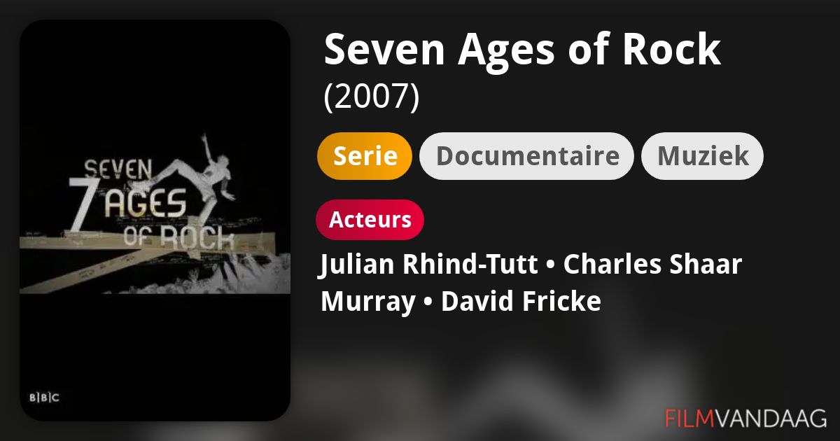 Seven Ages of Rock. 2007 Directed by Sebastian Barfield,. 7 Edades del Rock, Siete Edades del Rock, 7 Ages of Rock, Седемте епохи на рока, Sedm epoch rocku Genre. Documentary. 448 mins More at IMDb TMDb Report this page. Share. Copy URL to Clipboard.