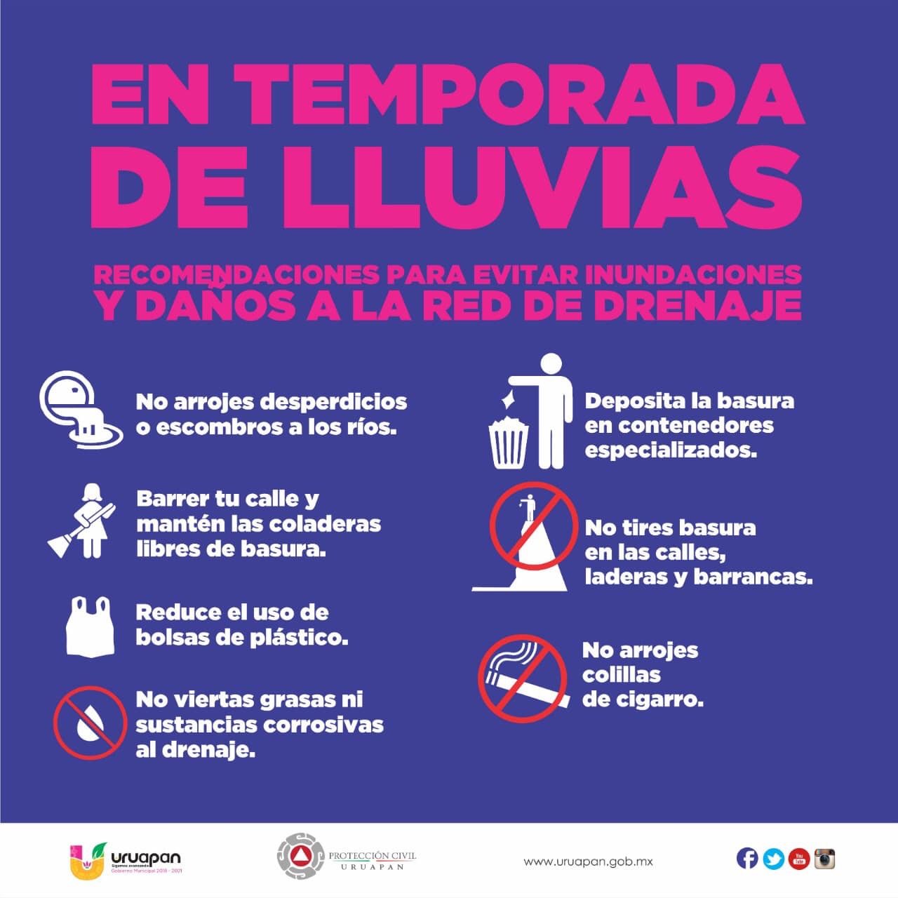 Tu puedes ayudar a evitar inundaciones. Basta con ayudar a cuidar la red de drenaje. Con Todas