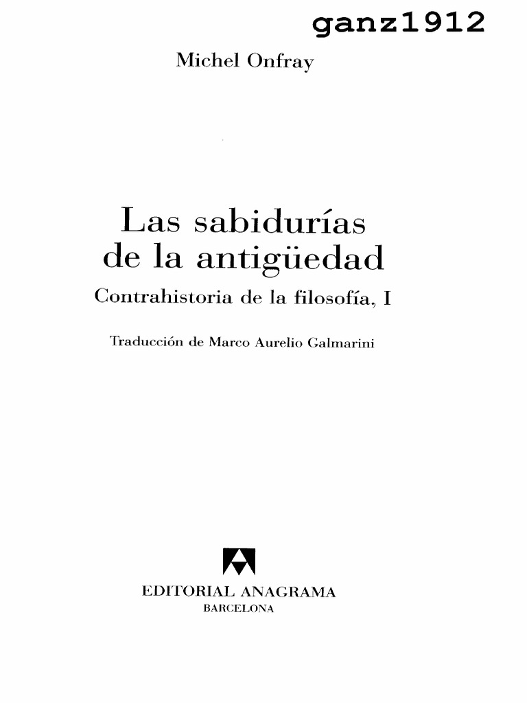 Onfray Michel Contrahistoria de La Filosofia I Las Sabidurias de La Antiguedad PDF