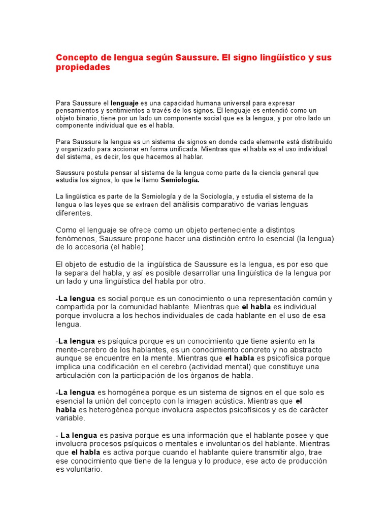 Concepto de Lengua Según Saussure Lingüística Habla
