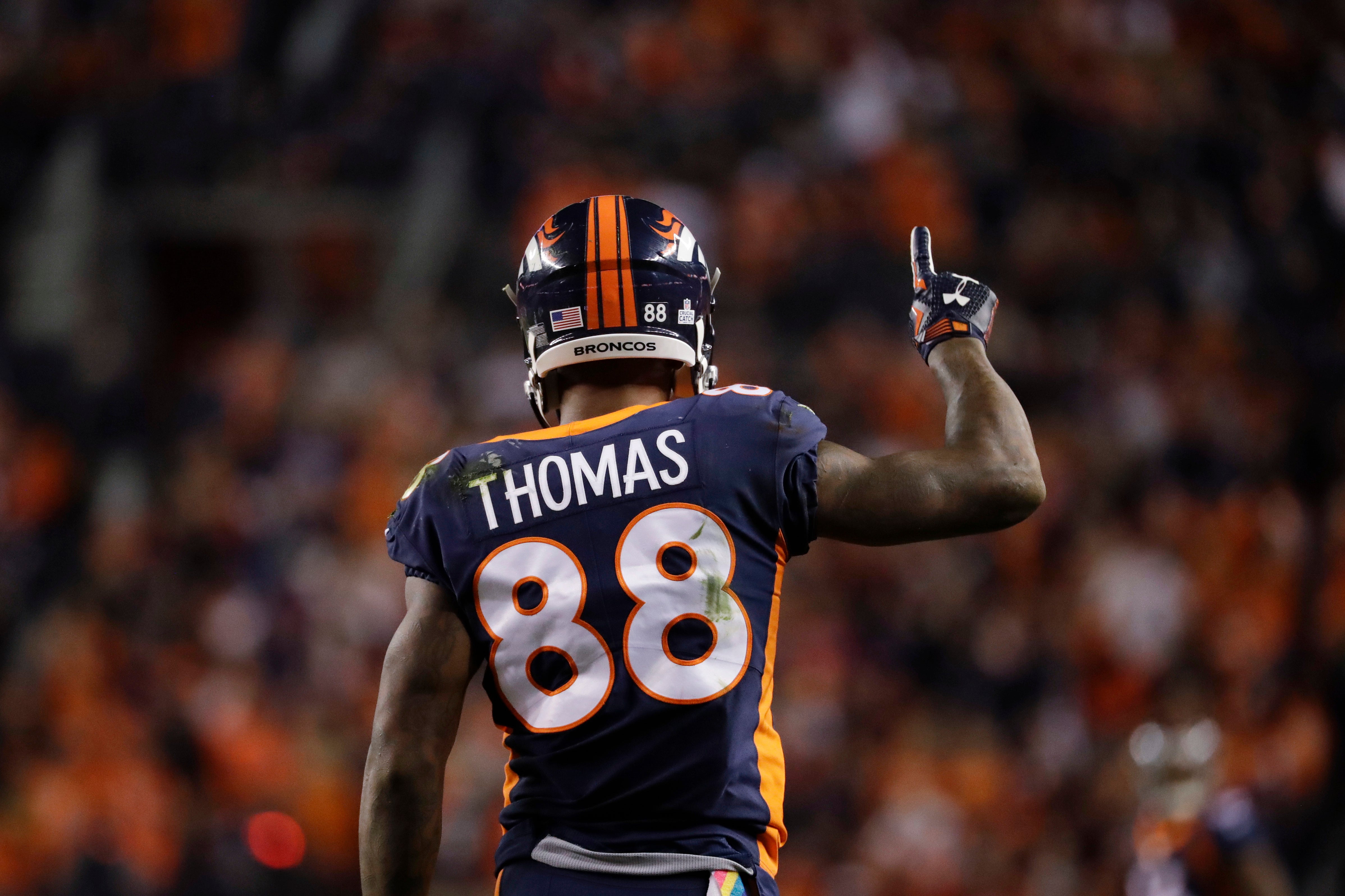 Demaryius Thomas, aquí en 2018 con los Denver Broncos, murió a la edad de 33 años, según la policía. La NFL emitió un comunicado en el que decía: "La familia de la NFL lamenta la trágica.