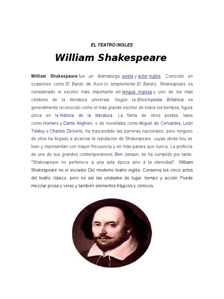 William Shakespeare - El mundo es un escenario, y todos los hombres y mujeres son meros actores. - Frases y Citas. Frases; Autores; Temas;. Biografia: William Shakespeare fue un dramaturgo, poeta y actor inglés. Conocido en ocasiones como el Bardo de Avon, Shakespeare es considerado el escritor más importante en lengua inglesa y uno de los.