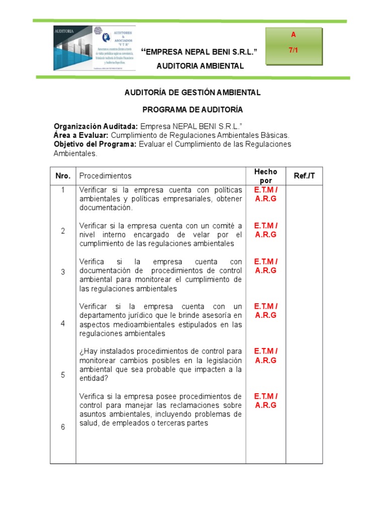 Programa de Auditoria Ambiental PDF Business Science