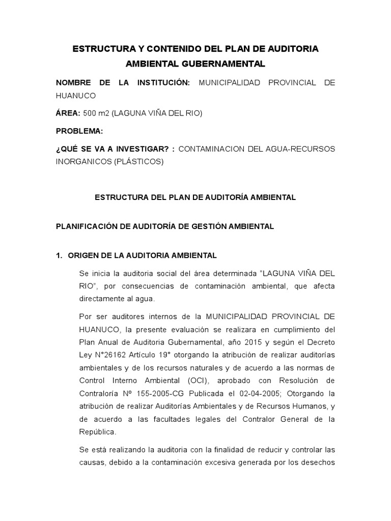 Estructura y Contenido Del Plan de Auditoria Ambiental Gubernamental1 El plastico Contaminación