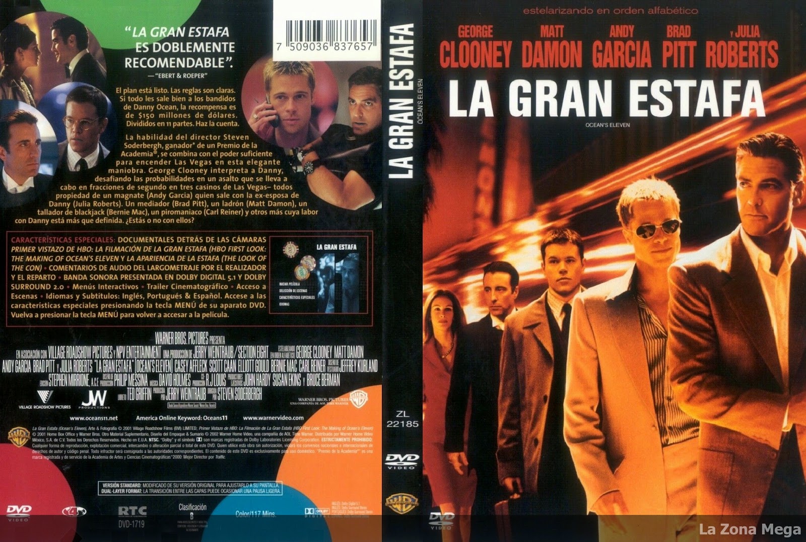 Mostrar comentarios. La gran estafa es una película dirigida por Steven Soderbergh con George Clooney, Brad Pitt. Sinopsis : Esta película de comedia y acción es un planificado enredo de engaños y fraudes protagonizados por Danny Ocean (George Clooney), un ladrón y estafador experto que recién ha salido.