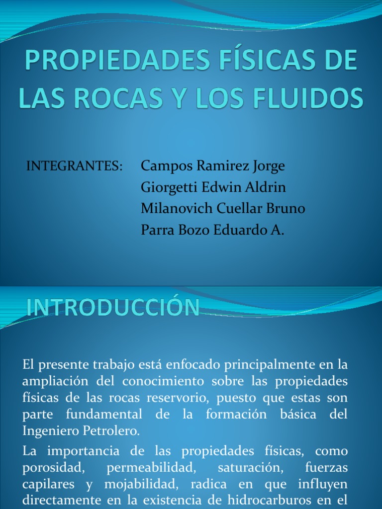 PROPIEDADES DE LA ROCA Y DE LOS FLUIDOS Mojada Permeabilidad (Ciencias de la Tierra) Free