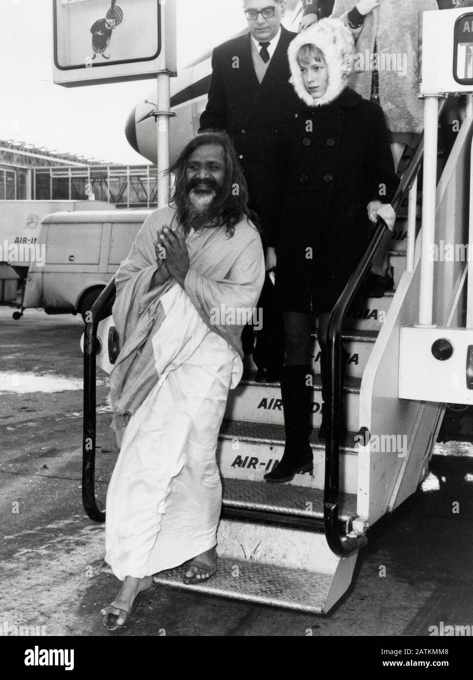 The Maharishi Mahesh Yogi and Mia Farrow arriving at London Airport. (January 24th, 1968) Cinema
