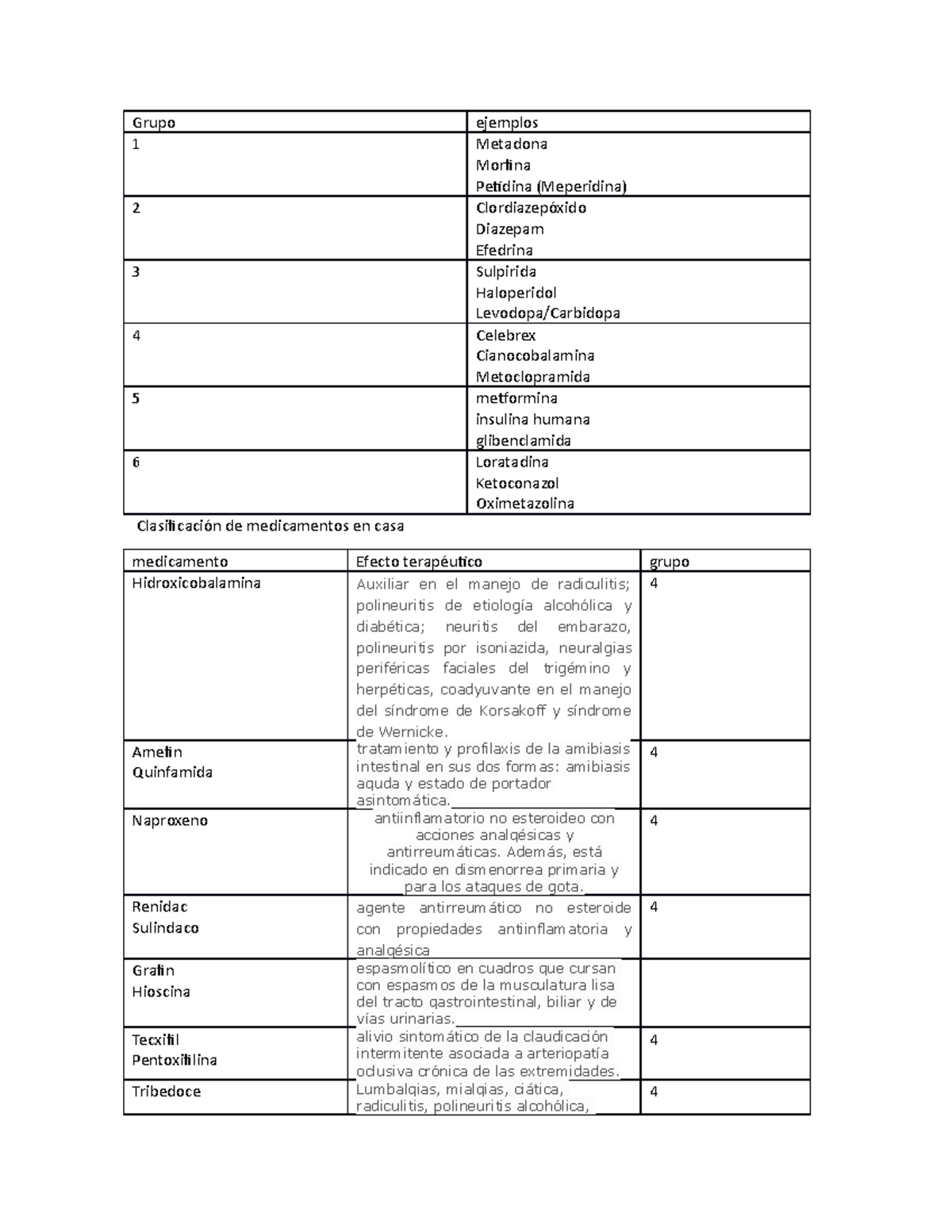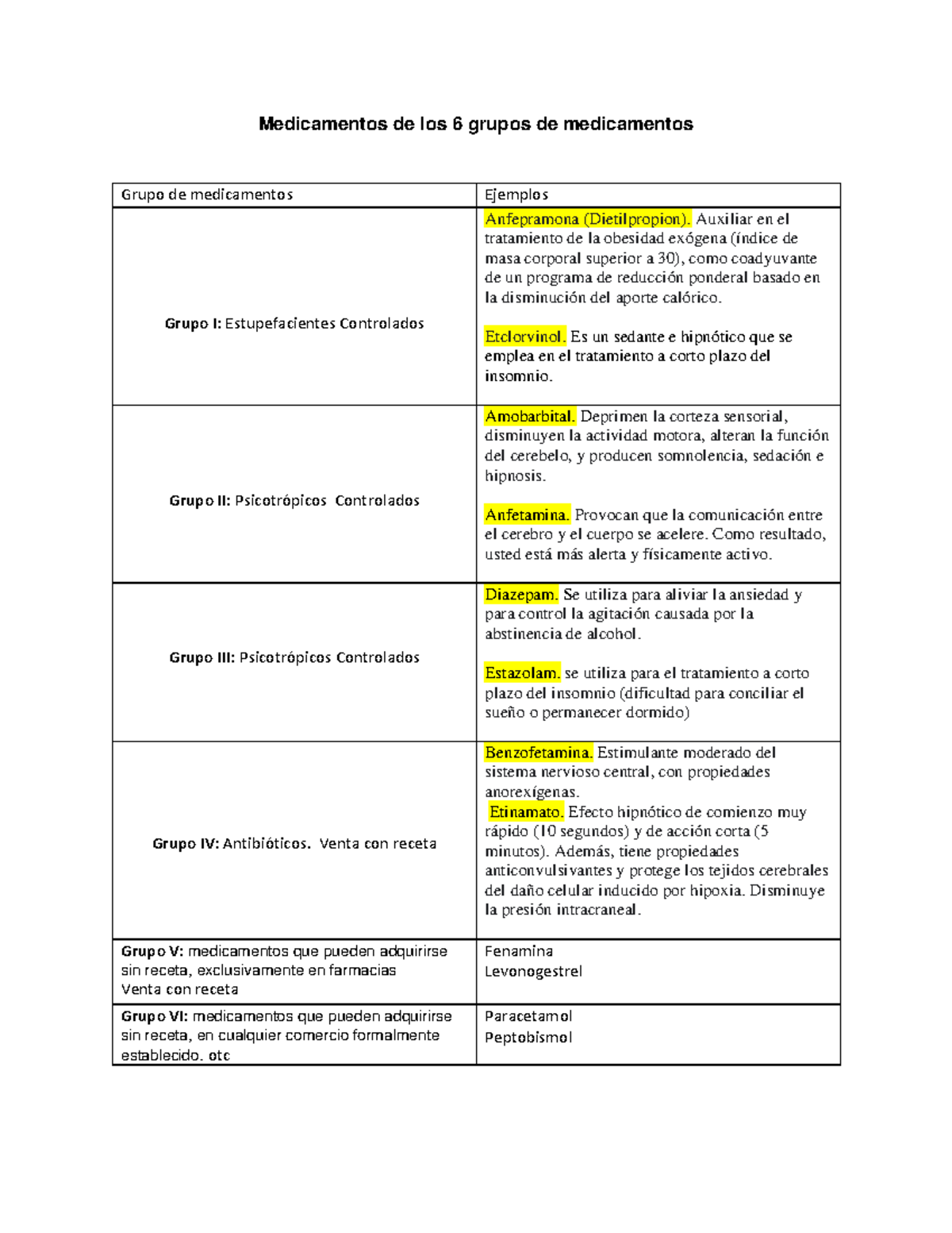 Grupos de medicamento Medicamentos de los 6 grupos de medicamentos Grupo de medicamentos