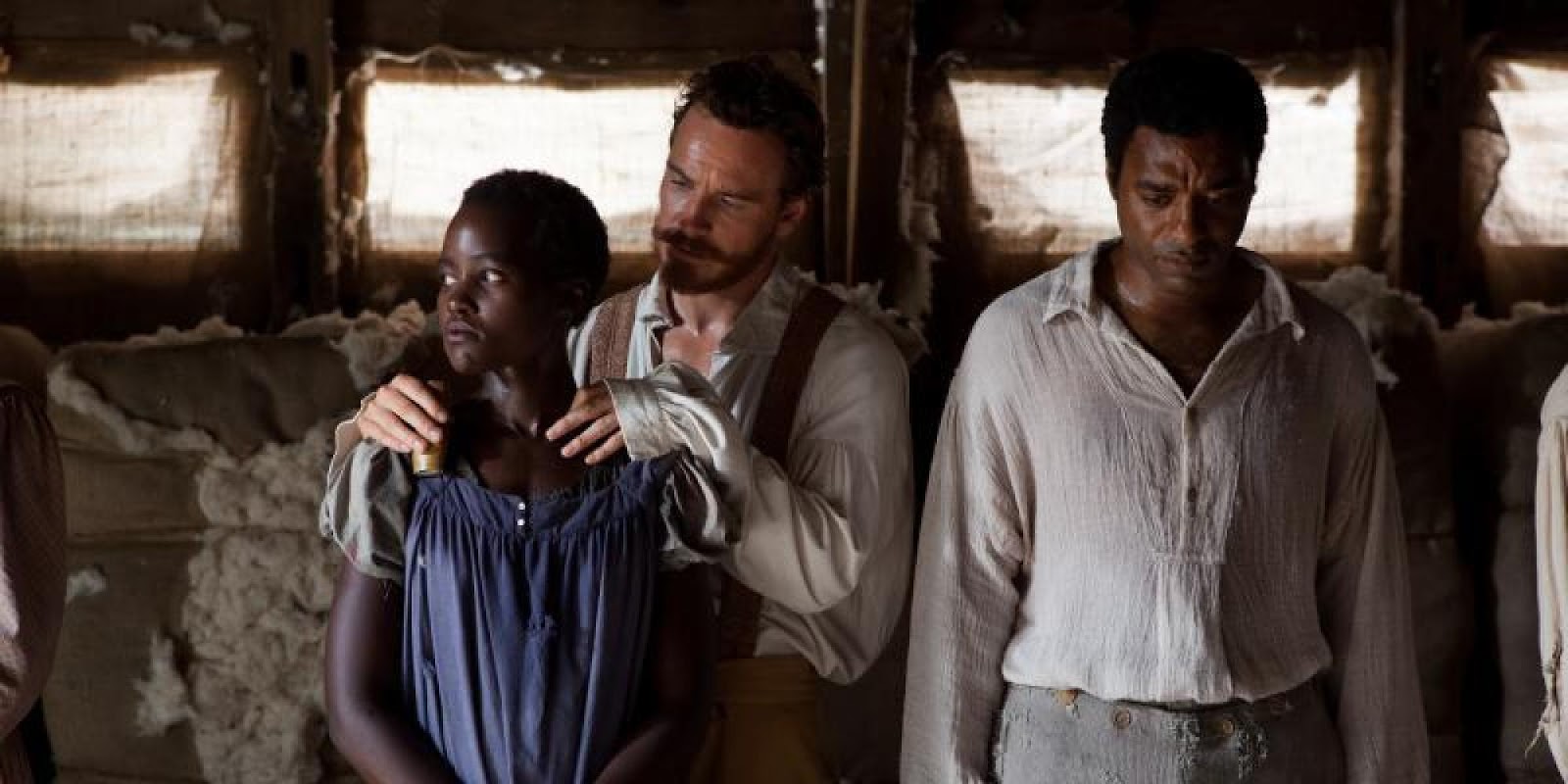 Northup (interpretado por un sobrenatural Chiwetel Ejiofor) es, efectivamente, privado de su libertad y termina en una plantación de algodón de Edwin Epps (Michael Fassbender), un propietario extremadamente racista y abusivo que lo someterá a vejaciones y será testigo de como trata a otros esclavos, como Patsey (Lupita Nyong'o). Este es.