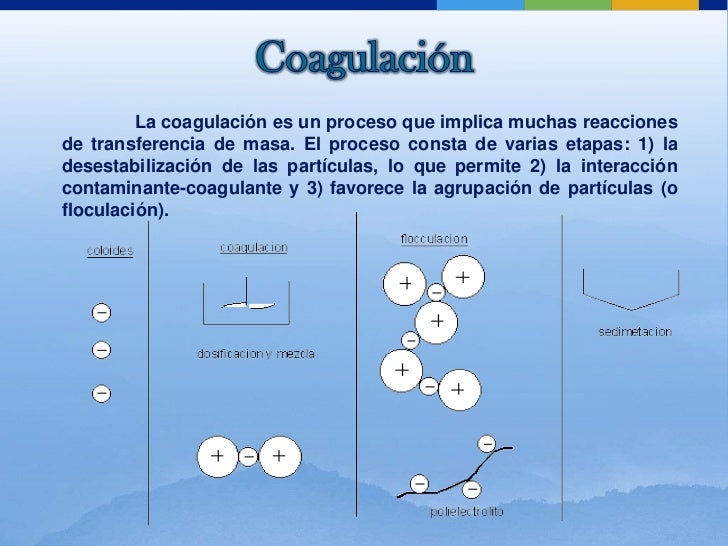 Coagulación - Floculación. S ección 2. Conceptos. - neutralizar la carga de los coloides, generalmente electronegativos, presentes en el agua. - Formar un precipitado. L a sedimentación de los coloides requiere un determinado tamaño de partícula, que se consigue mediante el proceso de coagulación. I ncluso partículas mayores, que no son.