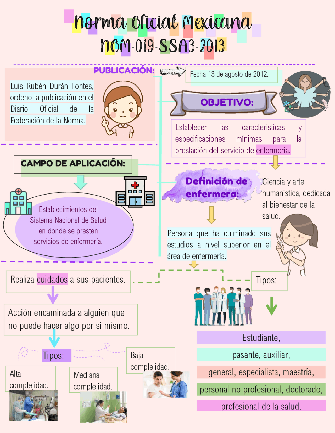Infografía sobre la NOM 019 de enfermería. Esquemas y mapas conceptuales de Enfermería Docsity