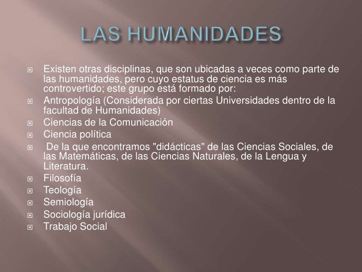 Tradicionalmente, muchas de las disciplinas que hoy se consideran ciencias sociales pertenecían al campo de las humanidades. Dado que las ciencias sociales son un campo del saber bastante joven en comparación, existe aún mucho debate respecto a qué disciplinas integran el campo humanístico y cuáles son realmente ciencias sociales.