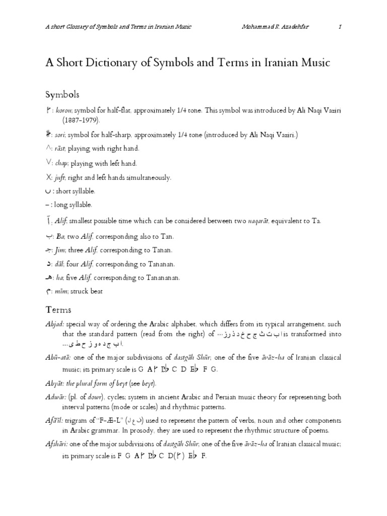 Dictionary of Symbols and Terms in Iranian Music Short VersionLibre PDF Rhythm Iran