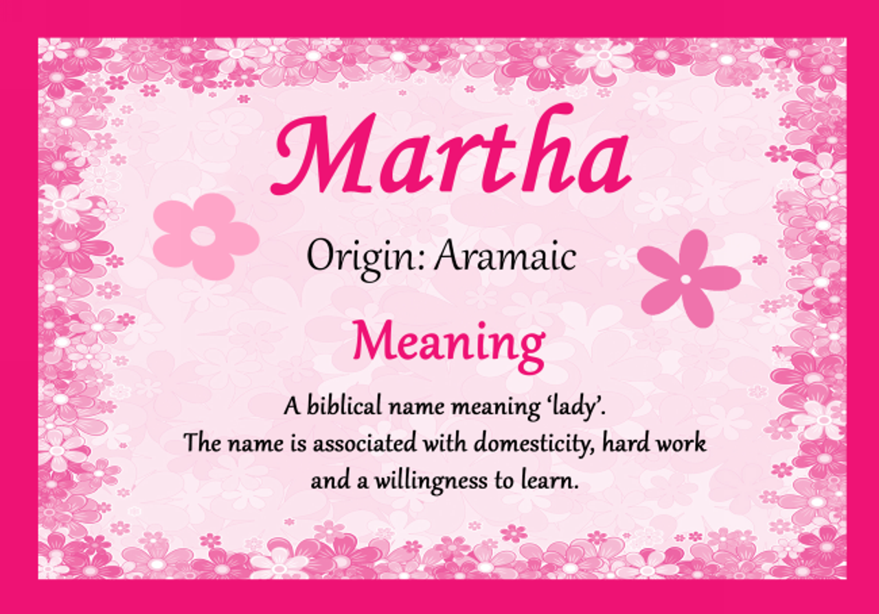 El nombre Martha proviene del arameo «marta», que significa «señora» o «dueña de la casa». En la Biblia, Martha fue la hermana de Lázaro y María, y es conocida por ser una mujer trabajadora y servicial. En el siglo XVII, se popularizó en los países anglosajones como un nombre de moda, y desde entonces ha sido utilizado en todo el mundo.
