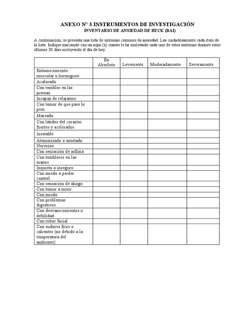 Inventarios de Depresión y Ansiedad de Beck PDF Sicología Las emociones
